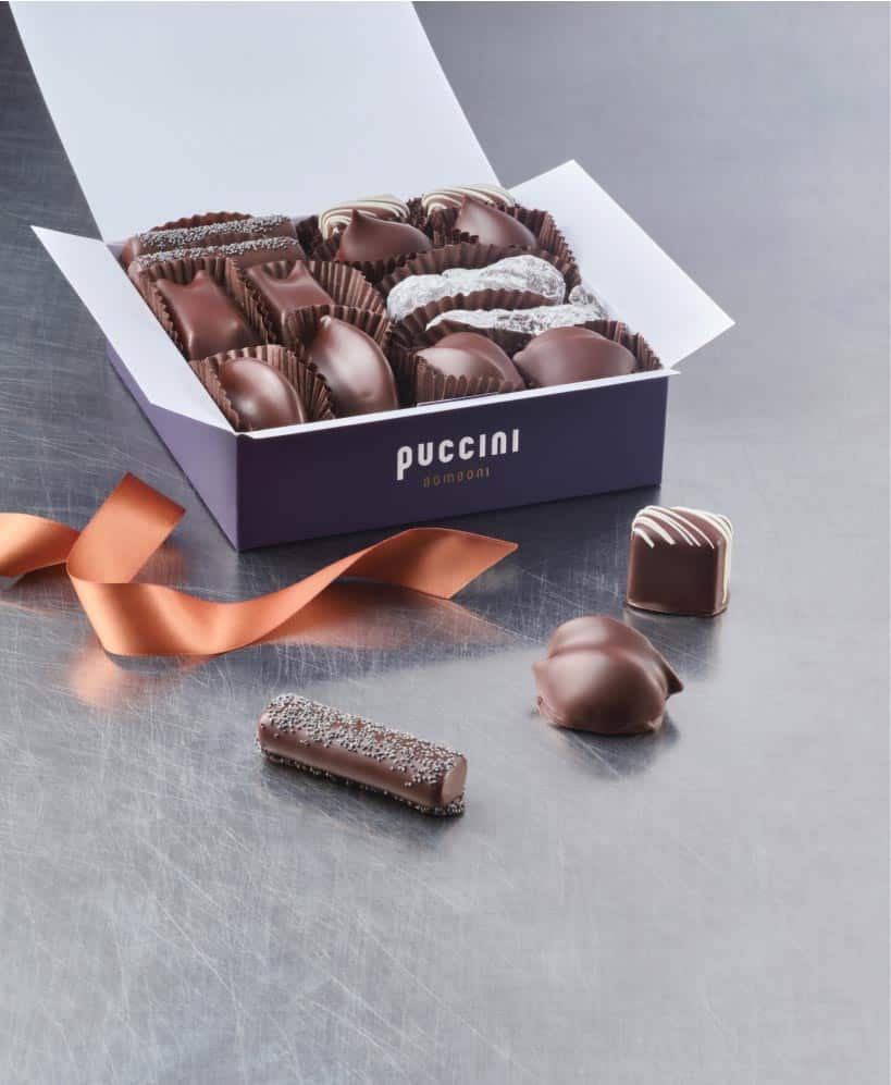 Wil je je eigen box overheerlijke bonbons samenstellen? Bezoek dan een Puccini Bombini winkel.