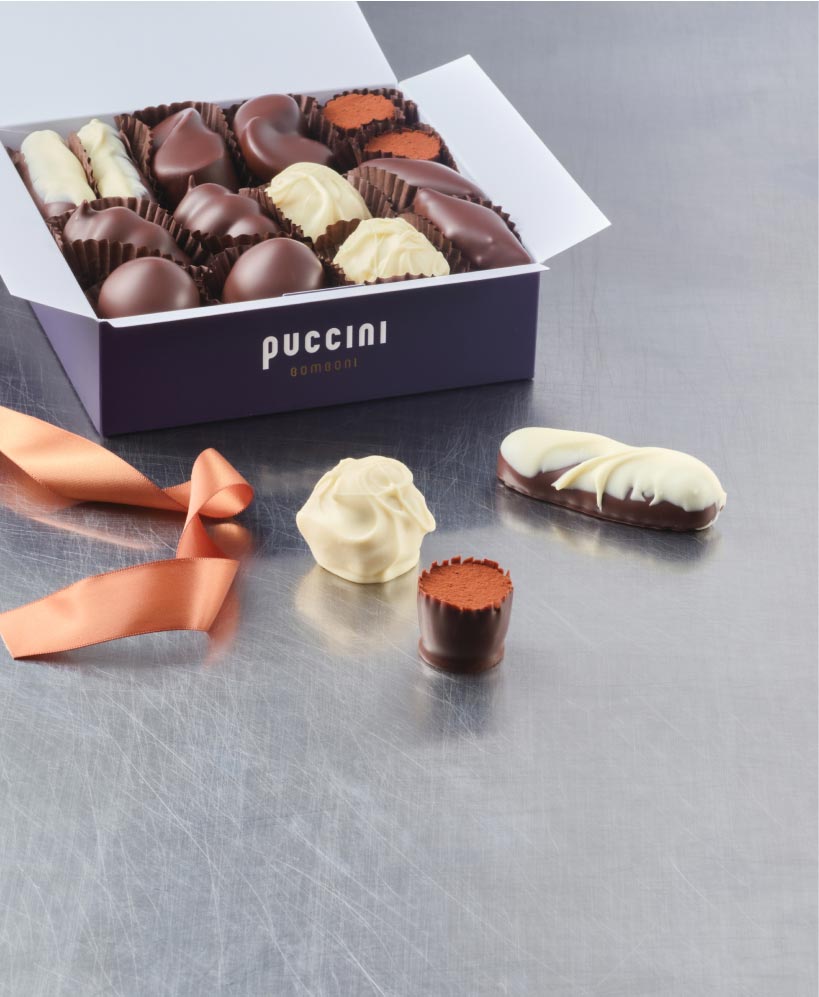 Puccini Bomboni bonbons zijn met aandacht voor ontwerp en smaak gemaakt. Daar zorgt onze Master Chocolatier Sabine van Weldam voor. Zij heeft met veel aandacht een aantal bijzondere bonbon selecties samengesteld. Maar laat je niet misleiden door hun kleine formaat – deze creaties zijn méér dan een klein hapje genot – ze zijn groots van smaak. Ontdek onze avontuurlijke, intense of juist meer frivole smaken of geniet van klassiekers als bijvoorbeeld onze opera of notenselectie.