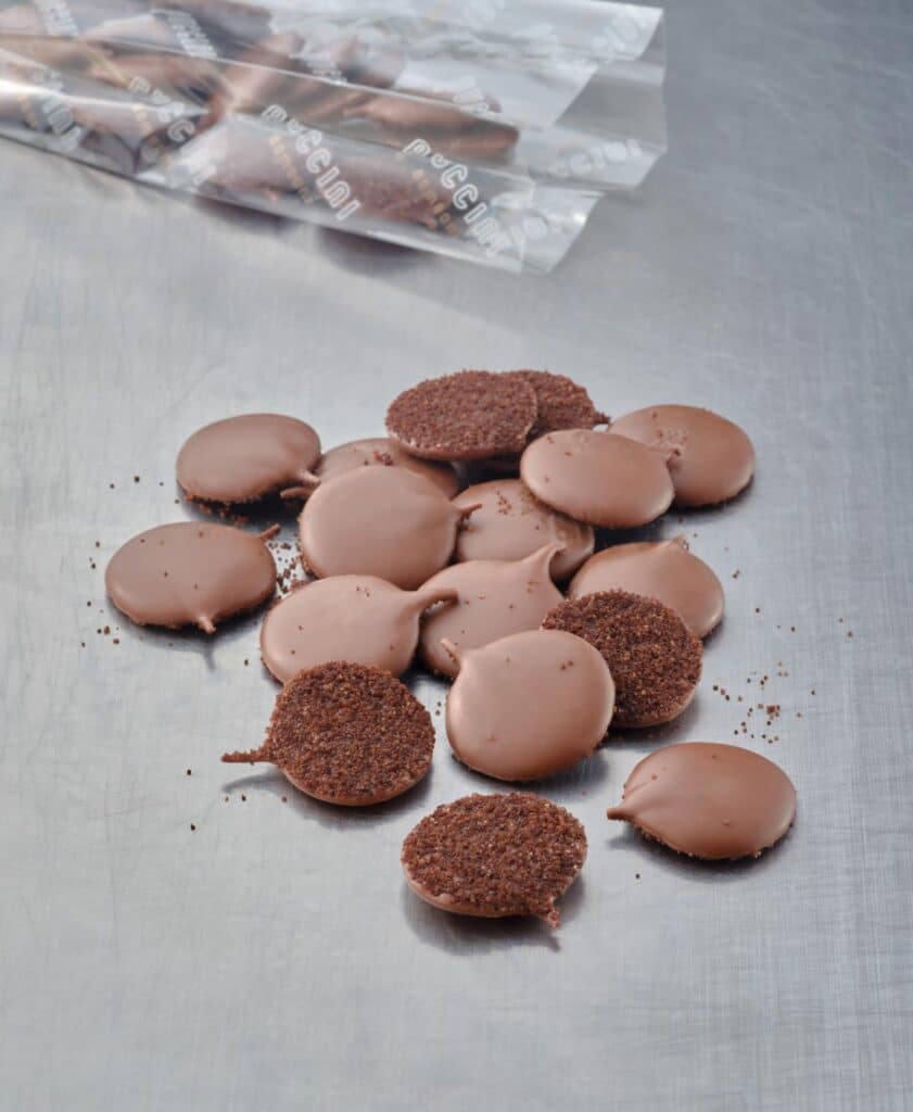 Melk, puur, en witte chocolade bestrooid met de door Puccini Bomboni zelf ontwikkelde knisperende cacaosuiker. U kunt kiezen uit de volgende varianten: Pure Chocolade, Melkchocolade of Witte Chocolade. De pure chocolade Crispies passen fantastisch bij een vegan lifestyle.