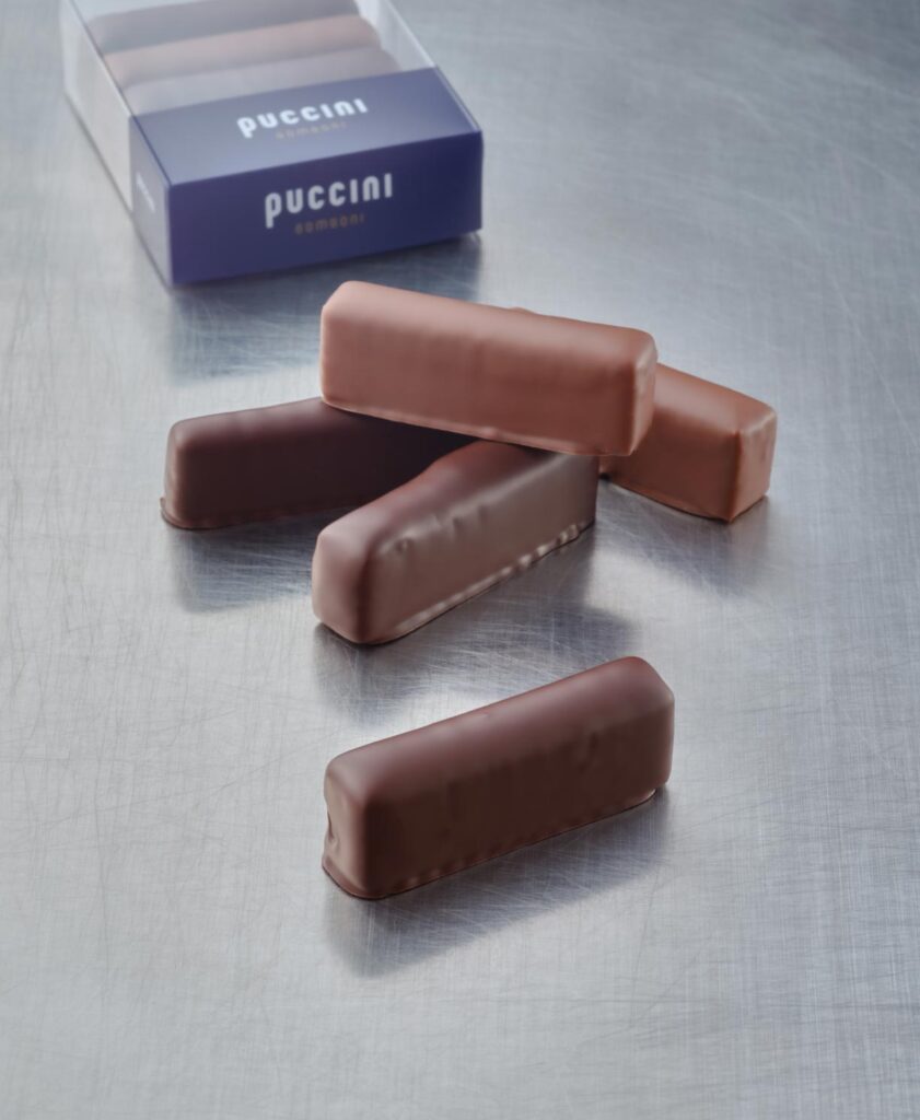 Dit product wordt verpakt in een doorzichtig Puccini Bomboni doosje van 10,5 x 8,2 x 3,0 cm.